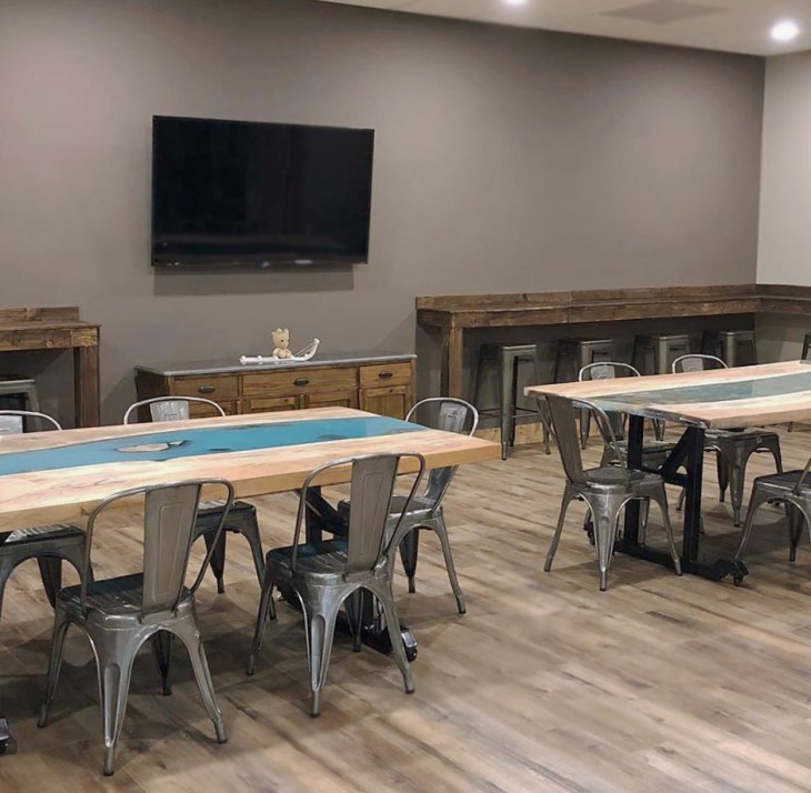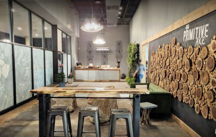 Furnishings and decoration throughout the center have a rustic flair, with live-edge wood tables and a sectioned tree mural providing an elemental feel.  A living wall is prominently displayed in the lounge along with resin filled tables to simulate pools of water.  The special event room features live-edge tables and counters while opening up to both the throwing lanes and lounge.  Primitive Axe is now open and has been an immediate success.  Check them out at http://www.primitiveaxe.com.